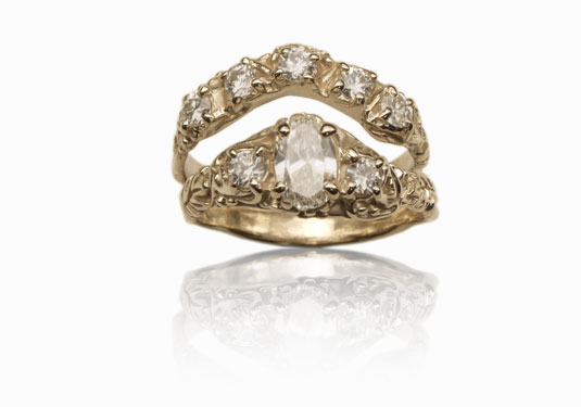 This ring has two different compliments that fit the design, one for the top and one for the bottom. We also have a version with all three rings together.