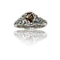 This ring is one from our Delicate collection. The art nouveau-inspired design is all flowing lines and delicate features (thus the name). It features a very vintage style 8x6mm pear shaped stone. It measures 8.65mm in the center front and tapers down to a more comfortable 3.3mm around the back.