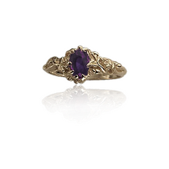 This is the first design in our Oak and Acorn Gemstone Series. This ring features an oval 6x4mm stone encased in branches of Oak with small acorns sprinkled throughout. It is about 7mm wide in the center front and tapers into a small 2.5mm plain band around the back. This design also has a selection of compliment rings that fit around the setting with and without gemstones.